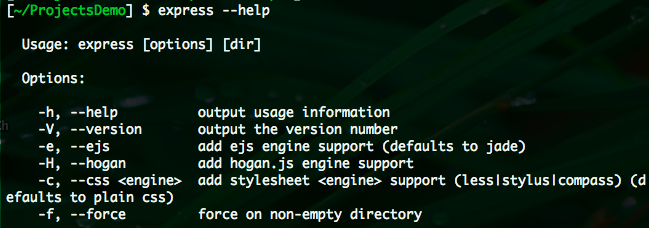我們用全域模式安裝 express ( $npm install -g express )之後就看一下 help 怎麼寫。