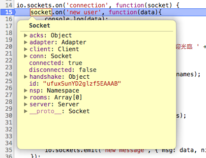 您可以將滑鼠指向 socket 的位置,可以看到 socket 相關的屬性及方法