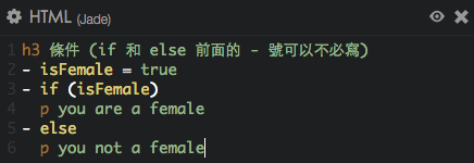 - Jade 在編譯後,會將 HTML 的補上結束標籤