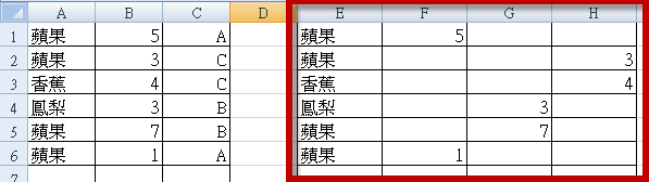 這一欄就是要將C類的水果總計起來,我們還需要借用分類區的地方把資料提取出來